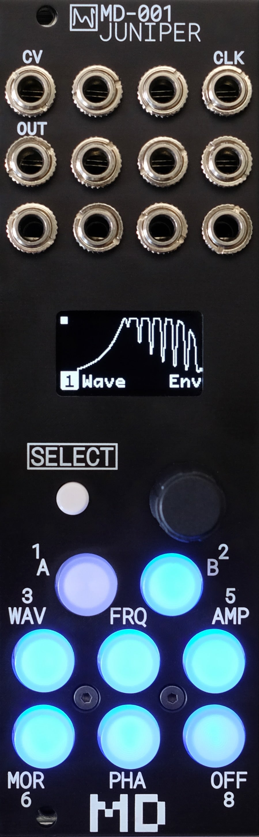 MD-001 Juniper is an 8 channel clock and modulation source with a powerful modulation matrix giving it the capability to generate complex waveforms.
